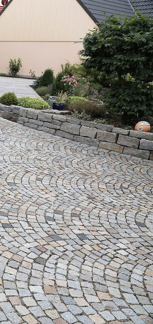 Egal, für welches Material Sie sich entscheiden – die Qualität der Pflasterarbeiten hängt zu einem großen Teil immer auch von der gründlichen Vorbereitung des Fundaments ab. Dabei stellen sich im Vorfeld schon einige Fragen: Soll die Fläche befahren werden oder dient sie lediglich als Fußweg? Wie ist der Untergrund beschaffen und wie weit dringt im Winter der Frost in den Boden vor? Hier lohnt es sich auf Gründlichkeit zu setzen, damit die verlegte Fläche über Jahre und Jahrzehnte stabil und ansehnlich bleibt. Sämtliche Arbeiten, vom Aushub der Erde über die Einfüllung und Verdichtung von Frostschutz und Schotterschicht bis zur Verlegung des Belags, werden von unseren im Pflasterbau ausgebildeten Mitarbeitern gekonnt und mit großer Sorgfalt ausgeführt, ganz gleich, ob es sich um die Verarbeitung von Natur- oder Betonsteinpflaster handelt. Wir beraten Sie gerne und informieren Sie über die Eigenschaften der verschiedenen Materialien sowie deren Eignung für Ihre Zwecke.